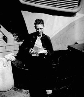 deck and always felt sick while the ship was in motion. The cooks would give him sandwiches through a